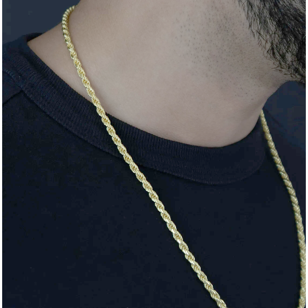 Introducing the newest addition to your wardrobe: 18K-Yellow-Gold Plated 2.2mm Sterling Silver Diamond-Cut Rope Chain! This stylish and unique piece is great for women or men. Its 2.2mm chain width is gold plated over sterling silver and features a lobster lock closure. Plus, it's hypoallergenic, so you know it's of high quality and safe for all skin types.