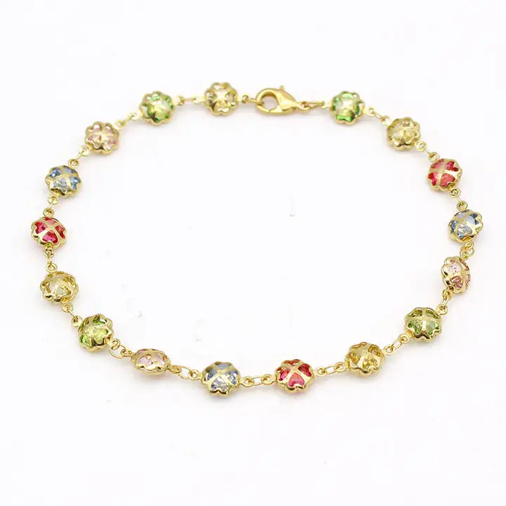 This multi-color crystal flower anklet is the perfect accessory to express your playful side while keeping your style effortlessly elegant.